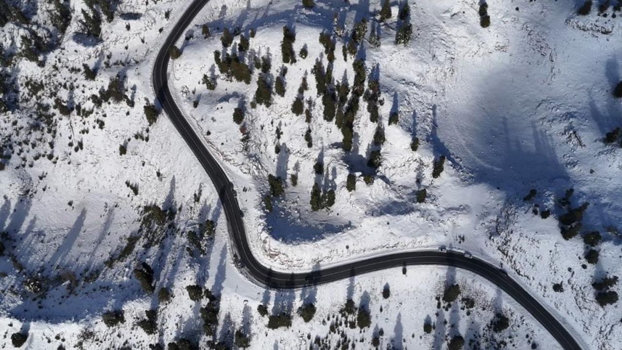 Mersin Anamur ilçesinde yüksek rakımlarda ormanlar karla kaplandı, bölge dronla havadan görüntülenirken ortaya kartpostallık görseller çıktı.