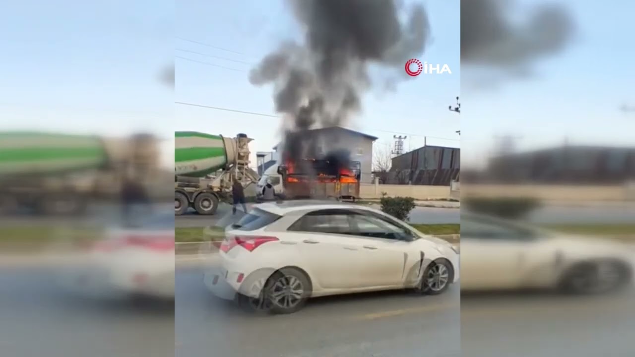 Mersin'de kasası alev alan bir kamyonet, trafikte ilerlemeye devam etti. Sürücü, aracı daha sonra yol kenarına çekerek durdurdu. Olay, Akdeniz ilçesindeki Sebze Meyve Hal Kompleksi yakınlarında gerçekleşti.