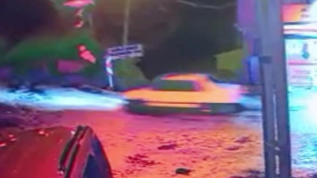 Mersin'in Erdemli ilçesinde sürücüsünün hakimiyetini kaybettiği otomobil, yaklaşık 7 metre aşağıya düştü. 2 yaralının olduğu kazanın anları güvenlik kamerasına anbean yansıdı.