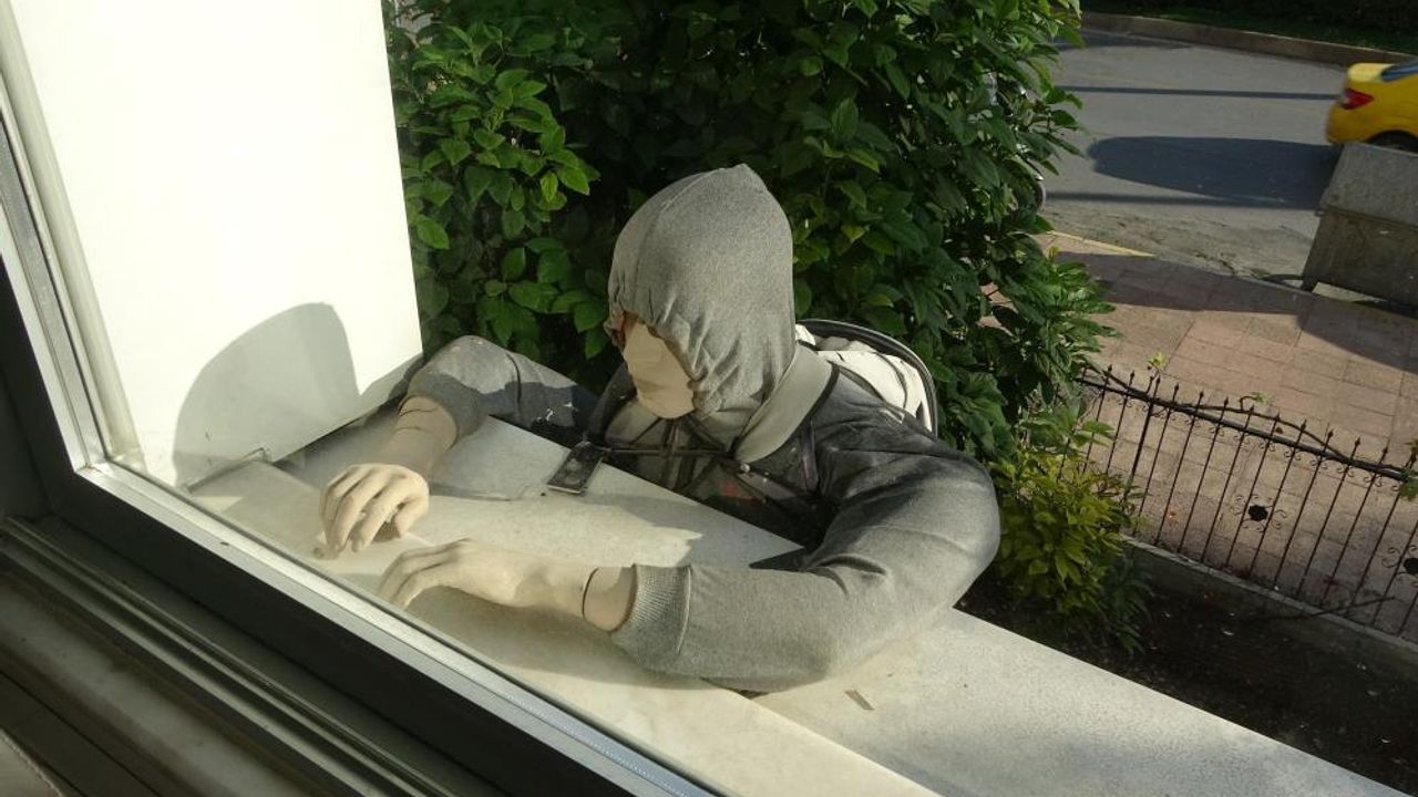 Mersin'de bir binanın penceresindeki hırsız görünümlü cansız manken, pek çok kişiyi yanıltarak kimi vatandaşları polisi aramaya, kimilerini ise pencereye taş atmaya yönlendiriyor. Gerçek olmadığı anlaşılınca ise olay tebessümle son buluyor.