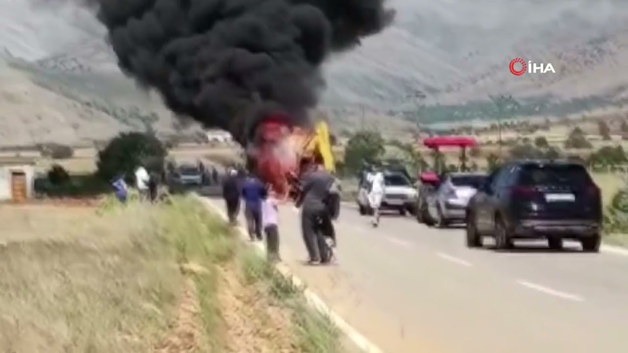 Edinilen bilgiye göre, olay Afşin ilçesi Sevin Mahallesi yolunda meydana geldi. İş makinesi operatörü seyir halindeyken aracın önündeki dumanı görerek 112 ekiplerine haber verdi.