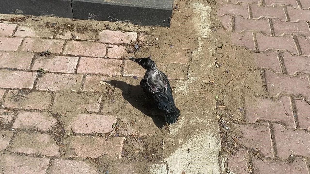 Antalya'nın Serik ilçesinde bir vatandaş, sıcaktan bunalan yavru kargayı serinletip eliyle su içirdi. Bir başka vatandaş ise yine sıcaktan etkilenen başka bir kargayı suyla serinletti.
