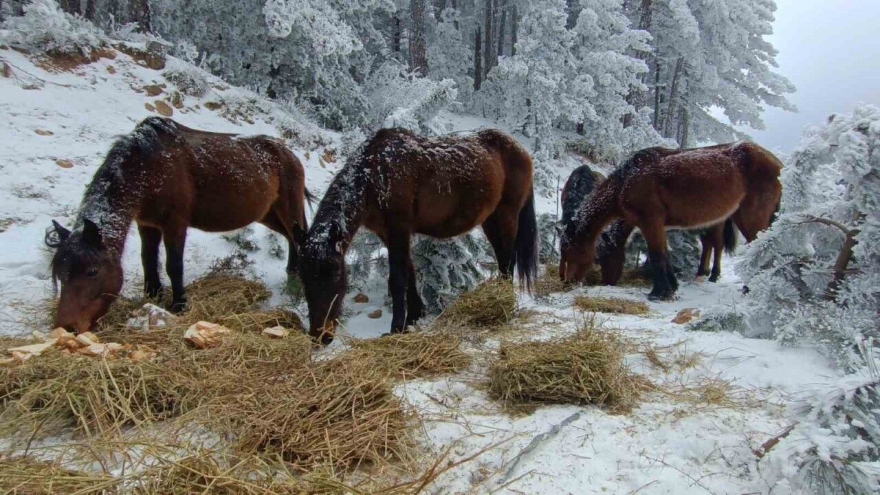 Manisa’nın eteklerine kurulduğu 1517 rakımlı Spil Dağı Milli Parkının karla kaplanmasının ardından yaban hayatı için yemleme çalışması yapıldı. Hava sıcaklığının eksi derecelerde olduğu milli parkta ekipler tarafından doğaya yonca ve buğday bırakıldı.