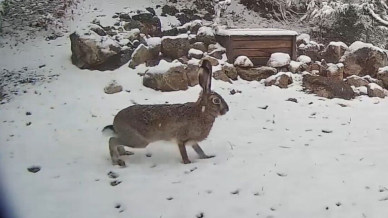 Tokat’ta yaban hayatı gözlemcisinin kurduğu fotokapan, karla kaplı ormanda dolaşan bir yaban tavşanını kaydetti.