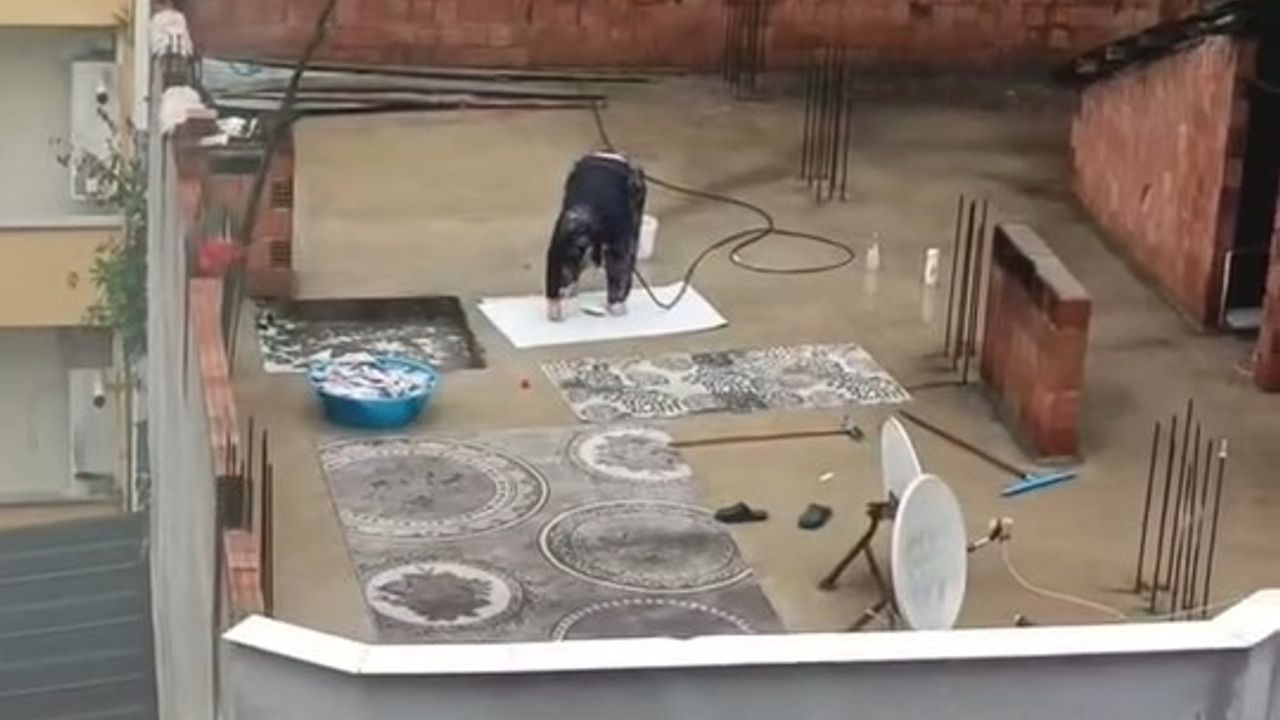 Bursa’da barajlar boşalmasıyla sular kesilmeye başladı. Bir yandan da yağmur yağışı başladı. Ancak bu yağışlar barajlar için şimdilik yeterli değil. Belediyenin uyarısı ve kesintilere rağmen bir kadın apartman çatısında halı yıkarken görüntülendi. İlginç anlar çevredeki vatandaşların dikkatinden kaçmadı. Yağmurun altında çatıda halı yıkayan kadını görenler, o anları cep telefonlarıyla kaydetti.