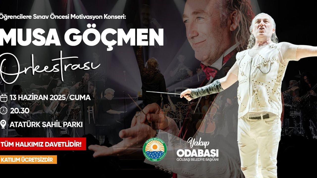 Gölbaşı Belediye Başkanı Yakup Odabaşı, Yükseköğretim Kurumları Sınavı (YKS) ve Liselere Geçiş Sistemi (LGS) girecek öğrencilere verdiği konser sözünü tuttu. 13 Haziran’da Atatürk Sahil Parkı’nda Musa Göçmen Orkestrası Gölbaşılılarla buluşacak.