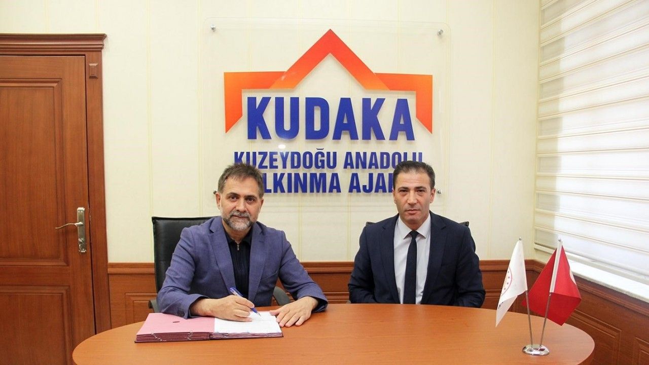 Kuzeydoğu Anadolu Kalkınma Ajansı hizmet binasında düzenlenen imza törenine KUDAKA Genel Sekreteri Oktay Güven ve Yakutiye Belediye Başkanı Dr. Mahmut Uçar katıldı.