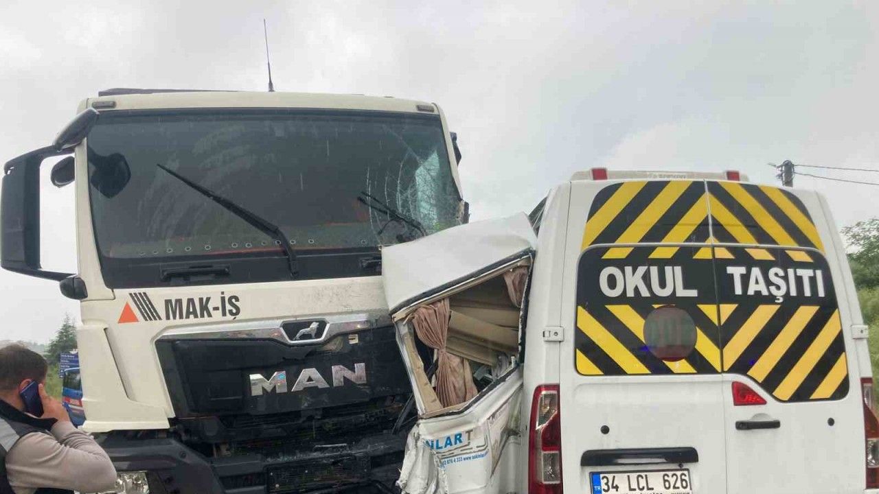 Yalova-Armutlu kara yoluna çıkış yapan servis minibüsüyle kamyonun çarpışması sonucu meydana gelen trafik kazasında 3 kişi yaralandı.