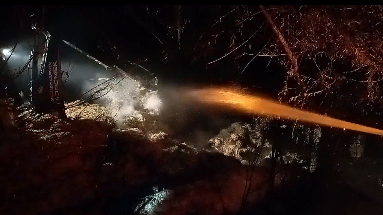 Edinilen bilgilere göre yangın, akşam saatlerinde henüz bilinmeyen bir nedenle Mahmut Uğur’a ait samanlık ve garajda çıktı. Kısa sürede büyüyen alevler, samanlıkta depolanan saman balyalarını sardı. Kıse sürede büyüyen alevler adeta geceyi aydınlattı. Yangını fark eden çevredekiler, durumu itfaiye ekiplerine bildirdi. Olay yerine sevk edilen itfaiye ekipleri yangına müdahale etti. Yoğun çabanın ardından alevler kontrol altına alınırken, yaklaşık 300 saman balyası tamamen yandı. Yangının çıkış nedeninin belirlenmesi için inceleme başlatıldı.