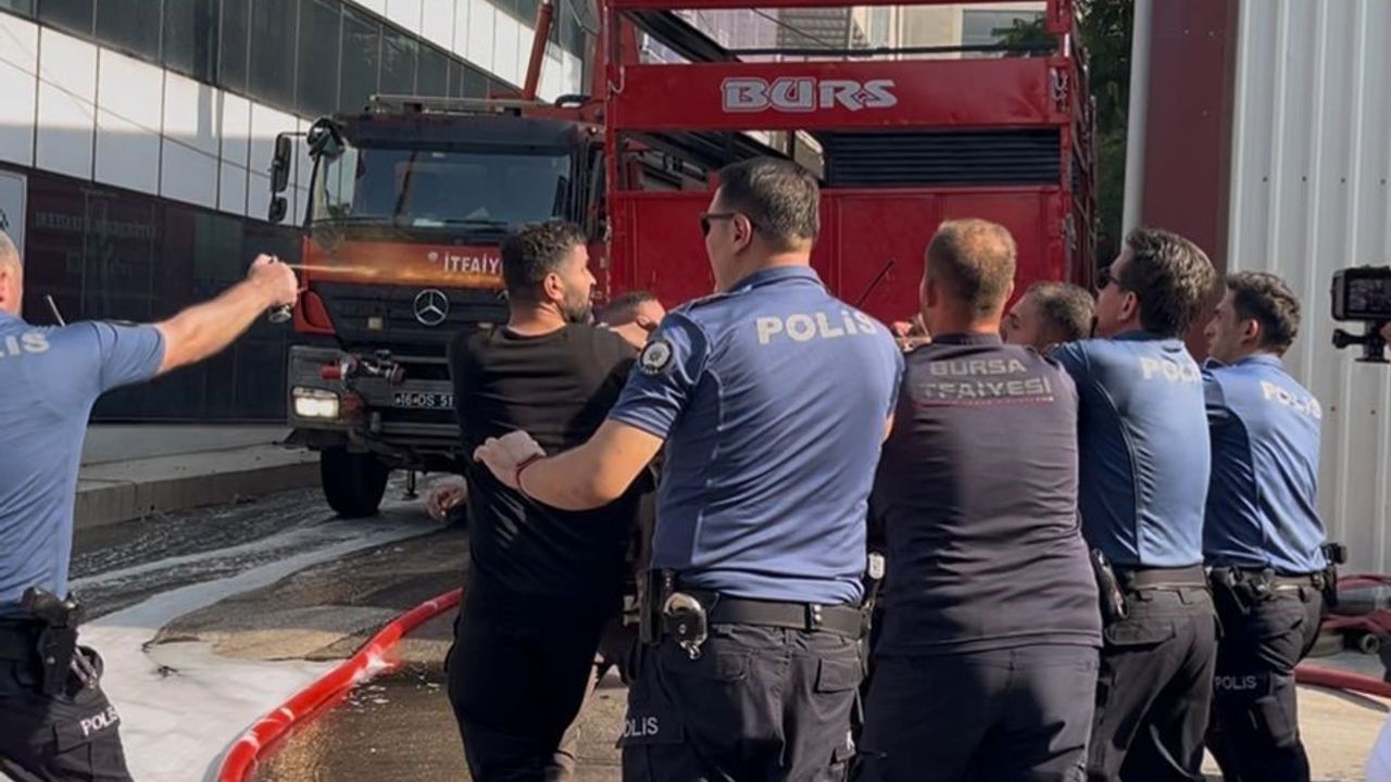 Bursa’nın Yıldırım ilçesinde bir tekstil atölyesinde yangın çıktı. Yangını söndürmek için ekipler seferber olurken, bir itfaiye personeli firma sahipleri tarafından darbedildi. Polisin biber gazıyla müdahale ettiği kavga kameraya yansırken, yangın kontrol altına alındı.