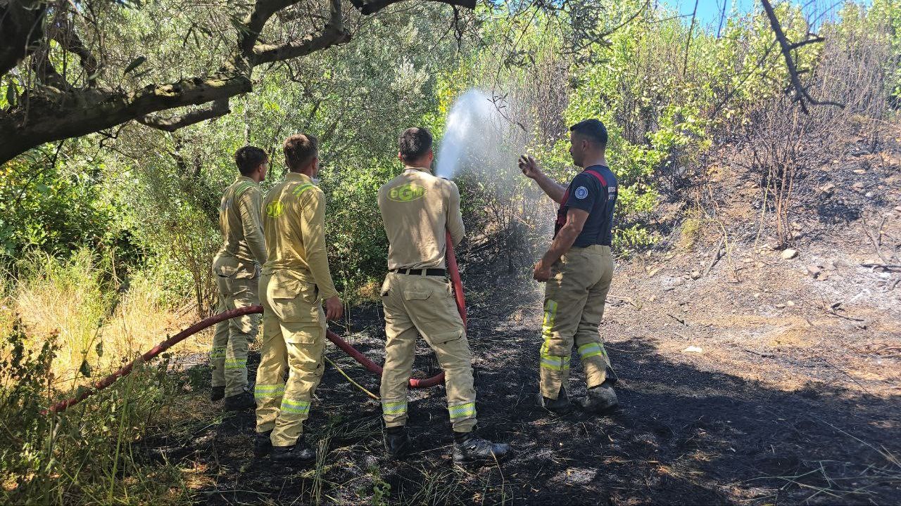 Bursa’nın Mudanya ilçesi Göktepe mevkiinde çıkan yangında yaklaşık 8 dönümlük zeytinlik ve çalılık alan zarar gördü. Alevlerin buğday tarlasına ulaşması son anda engellendi.