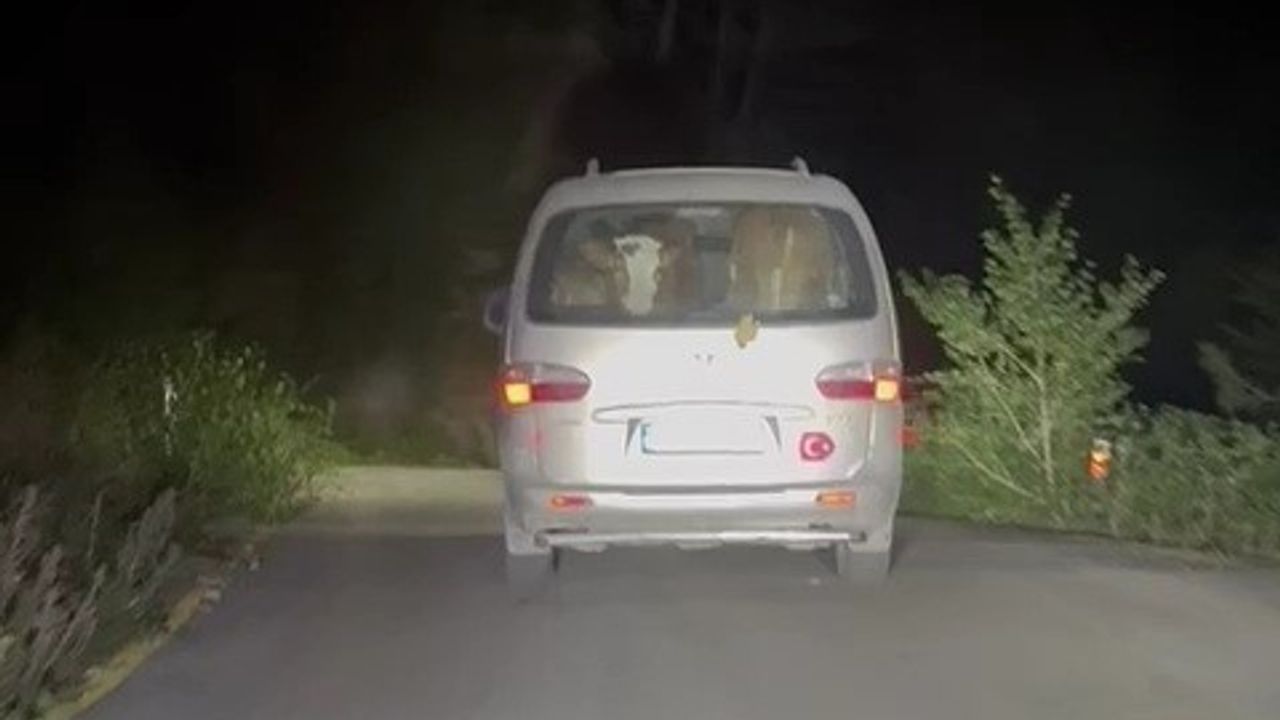 Karabük’te orman yangınında mahsur kalan büyükbaş hayvanlar kurtarılarak panelvan minibüsle tahliye edildi.