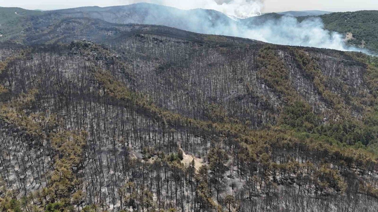 Fethiye ve Büyük Yayla mahallelerindeki ormanlık alanda dün sabah saat 08.30 civarında başlayan yangının kontrol altına alındığı açıklandı. Yangının 2 gün sürdüğü ormanlık alan küle dönerken, bölge dron ile görüntülendi. Çekilen görüntüler, yangının etkisini bir kez daha gözler önüne serdi. Alanda soğutma çalışmalarının devam ettiği öğrenilirken, zaman zaman rüzgarın etkisiyle küçük alanlardan yeniden alevlerin yükseldiği belirtildi.