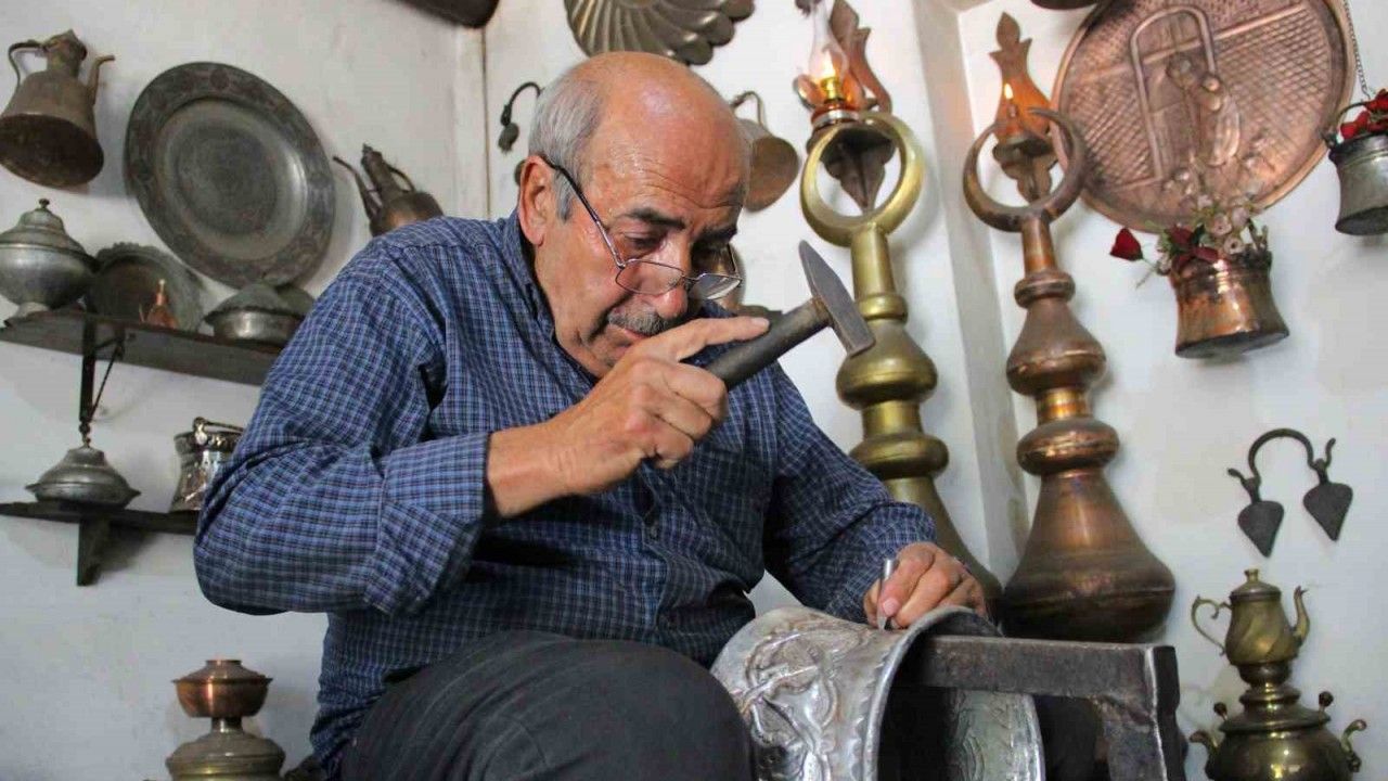Çorum’da yaşayan 72 yaşındaki zanaatkar, 50 sene önce başladığı mesleğini aşkla sürdürerek, bakır malzemeleri çekiciyle sanata dönüştürüyor.