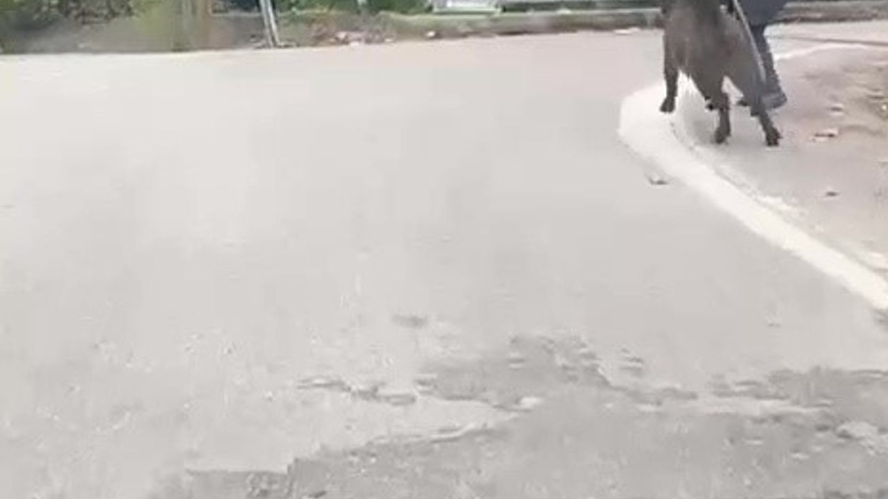 Zonguldak’ın Devrek ilçesinde kaydedilen görüntülerde yaşlı bir adamın üzerine koşan domuzdan son anda kurtuldu. Yolun ortasında koşturan domuz, amatör kamera görüntülerine yansıdı.