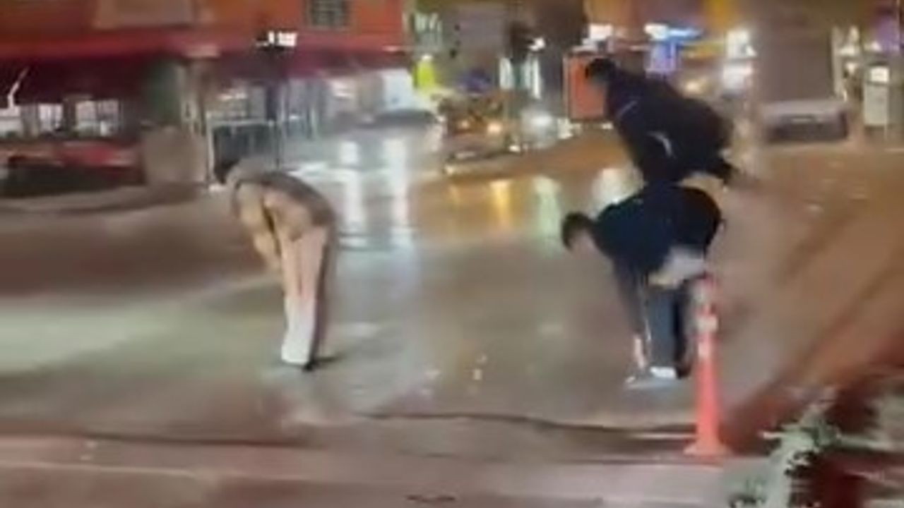 Bursa’da dört genç caddenin karşısına birdirbir oynayarak geçti. O anlar cep telefonu kamerasına yansıdı.