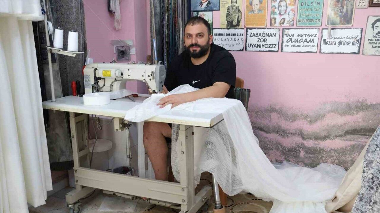 Kahramanmaraş merkezli depremlerde en çok yıkıma uğrayan Hatay’da, yaklaşık 25 bin insan hayatını kaybetmişti. Asrın felaketinden en çok etkilenen kentte, birçok insan enkaz altında uzuvlarını kaybetti. 6 Şubat depremlerinde sol bacağını enkazda kaybeden 36 yaşındaki Ali Şabanoğlu, depreme Defne ilçesi Çekmece Mahallesi’nde yakalandı. Eşi ve oğluyla enkazda kalan Şabanoğlu, çöken yuvasının molozlarından yemek masasının altında oluşturduğu yaşam alanıyla kurtuldu. Enkaz altından 52 saat sonra kurtarılan Şabanoğlu’nun sol bacağı ampute edildi ve yerine protez bacak takıldı. Bir yıl boyunca tedavileri devam eden Şabanoğlu, ayağına takılan protez ile şehrine geri döndü. Bir yıl sonra Hatay’a gelen Şabanoğlu, 2001 yılından beri yaptığı perde işine devam etti. 23 yıldır perde işini severek yapan Şabanoğlu, konteynerlere, evlere ve yurt içine satışlar yapıyor. Perdelerin imalatını kendisi yapan Şabanoğlu, ortalama 3 metre tülü ve güneşliği olan perdenin fiyatı bin 200 TL olarak satılıyor. Depremde evi ve iş yeri yıkılan Şabanoğlu, asrın felaketinde yaşadığı acıları unutmak için 23 yıldır severek yaptığı işini hevesle sürdürüyor.