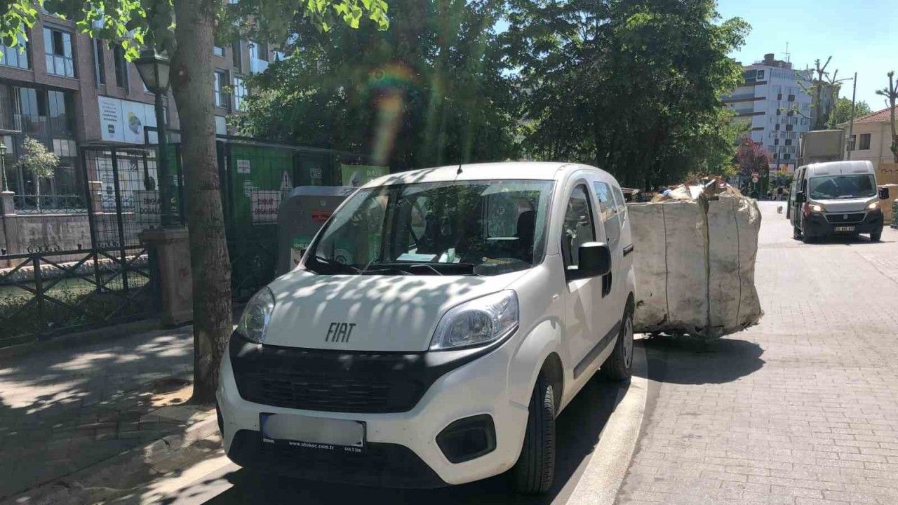 Eskişehir Büyükşehir Belediyesi tarafından Porsuk Bulvarı’na yeni yapılan bisiklet yoluna bir araç park etti.