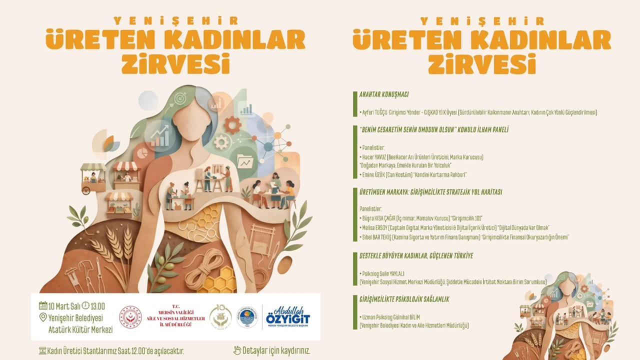 Zirve kapsamında sadece teorik bilgiler değil, pratik üretim süreçleri de desteklenecek. Etkinlik günü saat 13.00 itibarıyla açılacak olan "Kadın Üretici Stantları" ile yerel üreticiler ürünlerini sergileme ve tanıtma imkânı bulacak. Mersin Valiliği Aile ve Sosyal Hizmetler İl Müdürlüğü paydaşlığında gerçekleştirilen zirve, Yenişehir Belediye Başkanı Abdullah Özyiğit’in de katılımıyla kadınların ekonomik hayattaki rolünü güçlendirmeyi hedefliyor.