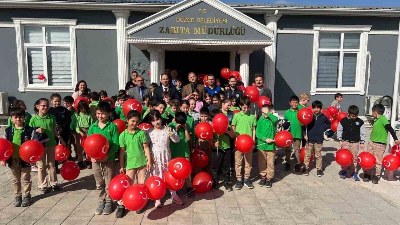 Fatih İlkokulu öğrencileri, Hayat Bilgisi dersinde işledikleri ‘Yerel Yönetimler’ konusunu bizzat yerinde öğrenmek için Düzce Belediyesi Zabıta Müdürlüğü’nü ziyaret etti