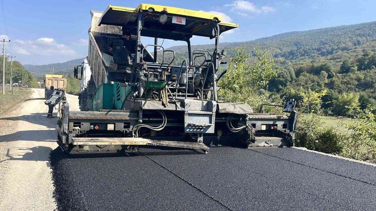 DÜZCE (İHA) – Düzce’de köy yollarında sıcak asfalt serim çalışmalarına devam eden ekipler Yeşilyayla köyünde de asfalt serim çalışmalarını tamamladı.