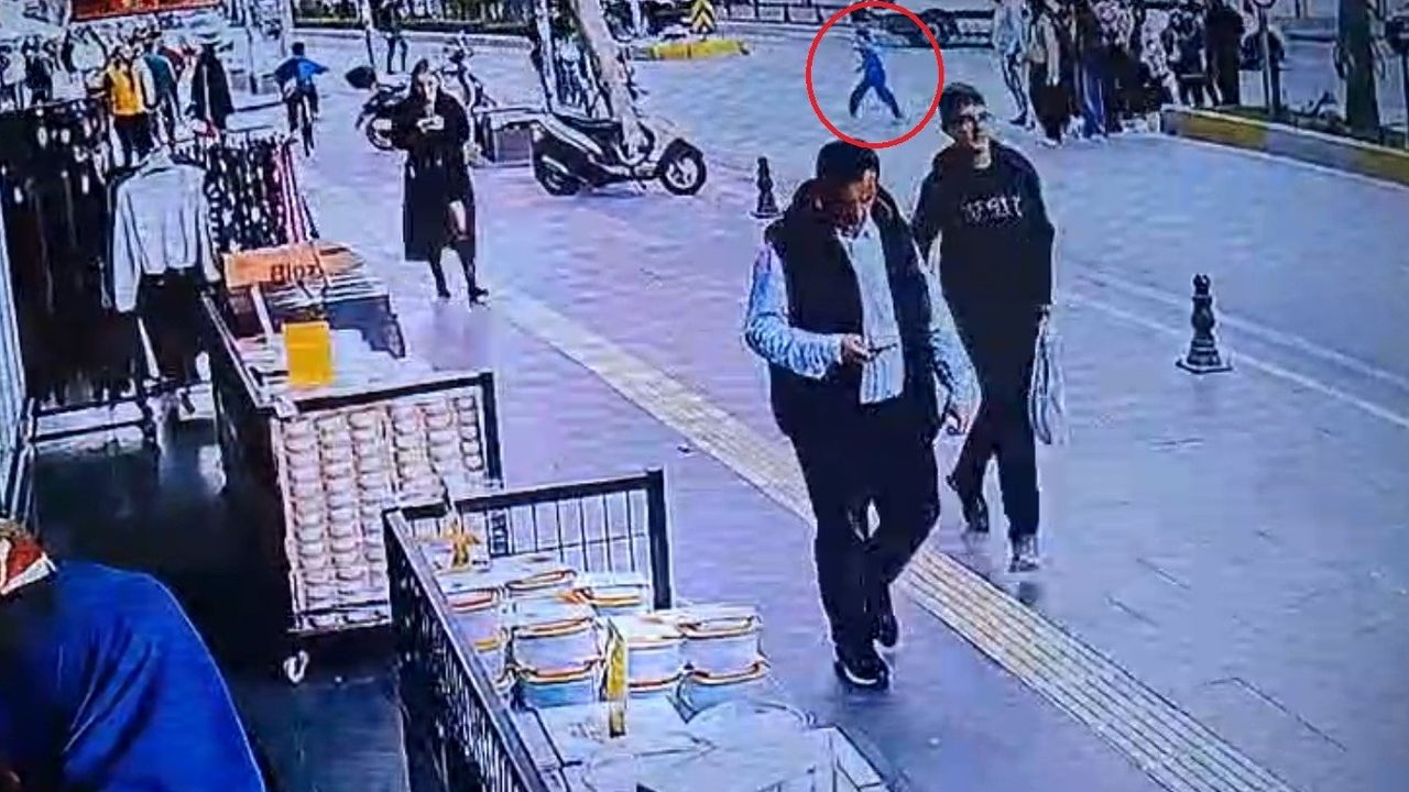 Kaza anı güvenlik kamerasına saniye saniyesine yansırken, yaya geçidindeki vatandaşların refüjde kendilerine yeşil ışığın yanmasını beklediği, tam hareket etmeye hazırlandıkları sırada küçük kızın aniden yola fırladığı ve motosikletin duramayarak küçük çocuğa çarptığı görüldü. Görüntülerin devamında ise motosiklettekilerin arkalarına bakarak yollarına devam ettiği, ayağa kalkan çocuğun yardımına yayaların koştuğu yer aldı.