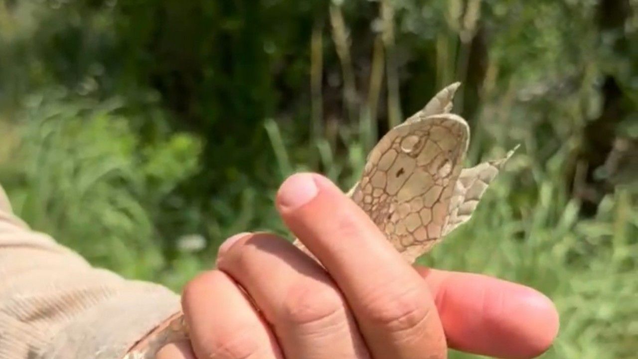 Her hafta olduğu gibi Hakkari ve ilçelerinin tanıtımına katkı sağlayan öğretmen Ümit Bartın, bu hafta Irak sınırında bulunan Dağlıca köyünü gezdi. Bölgenin zorlu ve eşsiz doğasında yürüyüş yaptığı sırada dikkat çekici bir bulguya imza attı. Doğaya olan tutkusu ve gözlem yeteneğiyle tanınan Bartın, tamamen bozulmamış, Türkiye’nin en zehirli yılan türlerinden birine ait olduğu tahmin edilen bir yılan derisiyle karşılaştı. Bartın’ın bu keşfi, bölgedeki yaban hayatının çeşitliliğine dikkat çekti.
