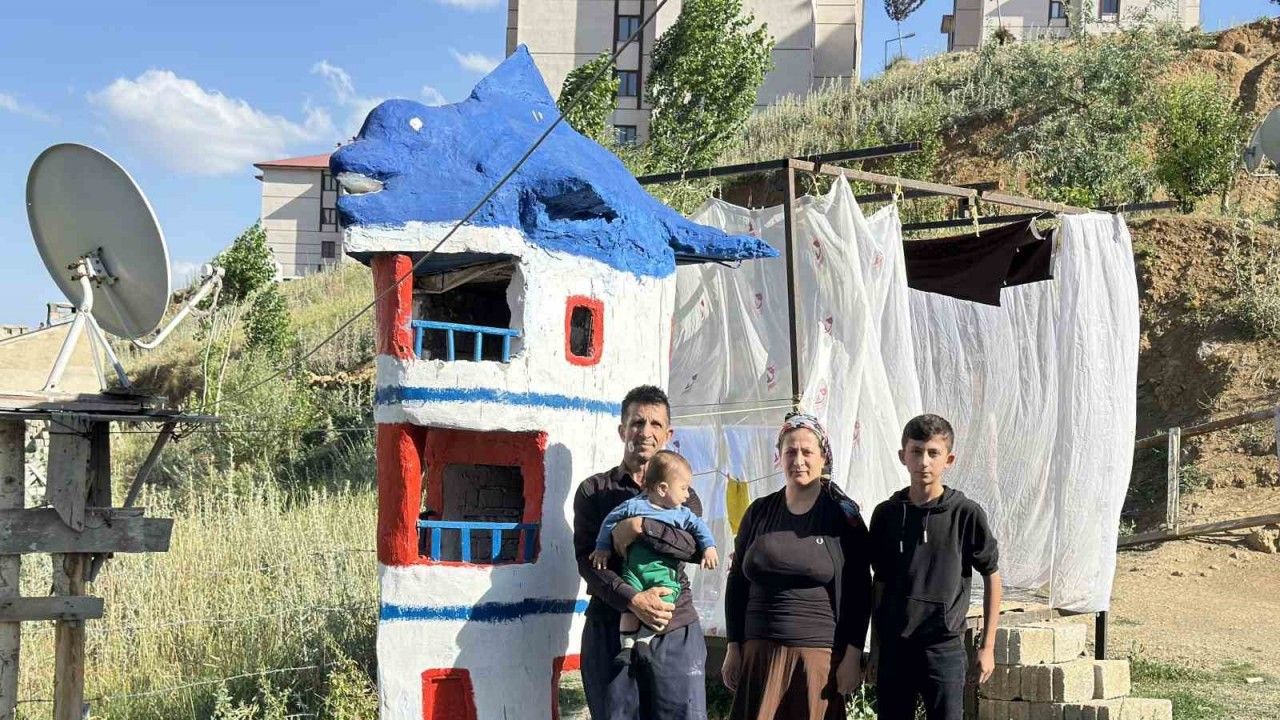 Hakkari’nin Yüksekova ilçesinde Yusuf Duru, hayalini kurduğu evi tamamlayamayınca bahçesinde gemi ve yunus figürlü ev maketi inşa etti.