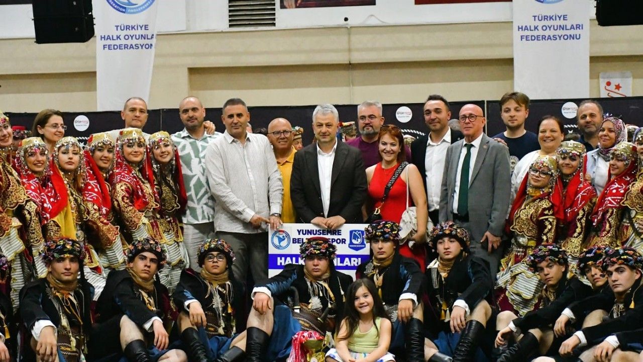 Yunusemre Belediyespor Halk Oyunları Ekibi, Türkiye Halk Oyunları Federasyonu tarafından İzmir’de düzenlenen Ege Bölge Şampiyonası’nda iki dalda şampiyon olarak Manisa’ya çifte kupa zaferiyle döndü. Yarışmalarda harika bir performans ortaya koyan Mavi Beyazlılar, gençler düzenlemeli ve gençler düzenlemesiz karma dalında büyük bir başarıya imza atarak birinci olup zirvede yer aldı. Gençler, bu başarısıyla Manisa’nın 14 yıl süren Türkiye Finalleri hasretine son verdi. Yunusemre Belediyespor, gençler düzenlemeli dalda 89.40 puanla yarışma geneline katılan toplam 30 ekip arasında en yüksek ikinci puanı aldı. Mavi Beyazlılar, 13-15 Haziran tarihlerinde Şanlıurfa’da yapılacak Türkiye Şampiyonası Finalleri’nde Manisa’yı temsil edecek.