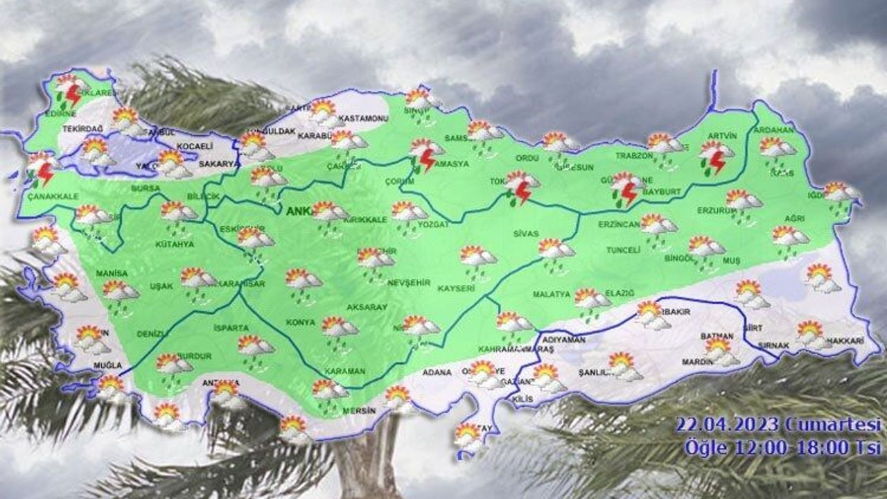 Meteoroloji Genel Müdürlüğü, yayımladığı 22 Nisan Cumartesi gününe ait hava durumu raporuna göre deprem bölgesindeki 11 ilde kuvvetli sağanak bekleniyor.