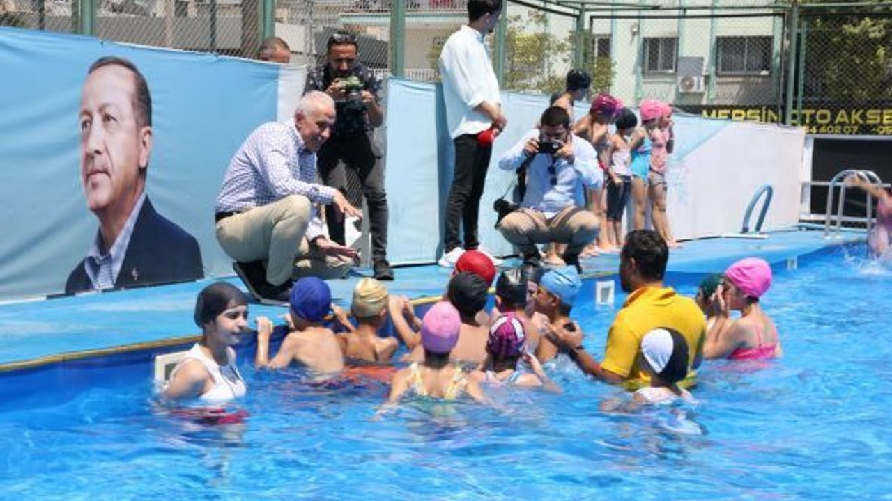 Akdeniz Belediyesi’nin düzenlediği yaz okulu çerçevesinde verilen ücretsiz yüzme kursu devam ediyor. Madımak Parkı’nda kurulan portatif yüzme havuzuna giren çocuklar hem yüzmeyi öğreniyor hem de sıcak havada serinliyor. Kültür ve Sosyal İşler Müdürlüğü’nün düzenlediği yüzme kursunda bu yıl; 2010 ila 2016 yılları arası doğumlu çocuklar faydalanabiliyor. Kursa katılan çocuklar, uzman eğitmenler gözetiminde bir yandan yüzme öğrenirken, diğer yandan da yaşıtlarıyla birlikte keyifli dakikalar geçiriyor.