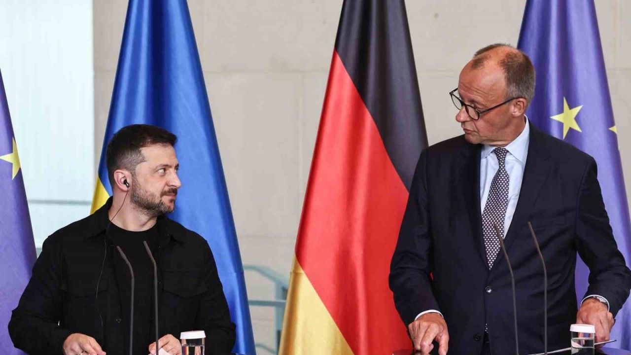 Almanya Başbakanı Friedrich Merz, ABD Başkanı Donald Trump ile Rusya Devlet Başkanı Vladimir Putin’in cuma günü ABD’nin Alaska eyaletinde yapacağı görüşme öncesinde Ukrayna’daki durumun ele alındığı Ukrayna Devlet Başkanı Vladimir Zelenskiy, ABD Başkanı Donald Trump ve AB liderleri ile yaptığı iki ayrı video konferans görüşmesinin ardından Zelenskiy ile ortak basın toplantısı düzenledi.