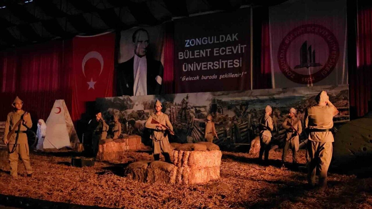 Zonguldak’ta 18 Mart Çanakkale Zaferi ve Şehitleri Anma Günü kapsamında Bülent Ecevit Üniversitesi Kapalı Spor Salonu’nda Çanakkale Savaş Gösterisi sergilendi